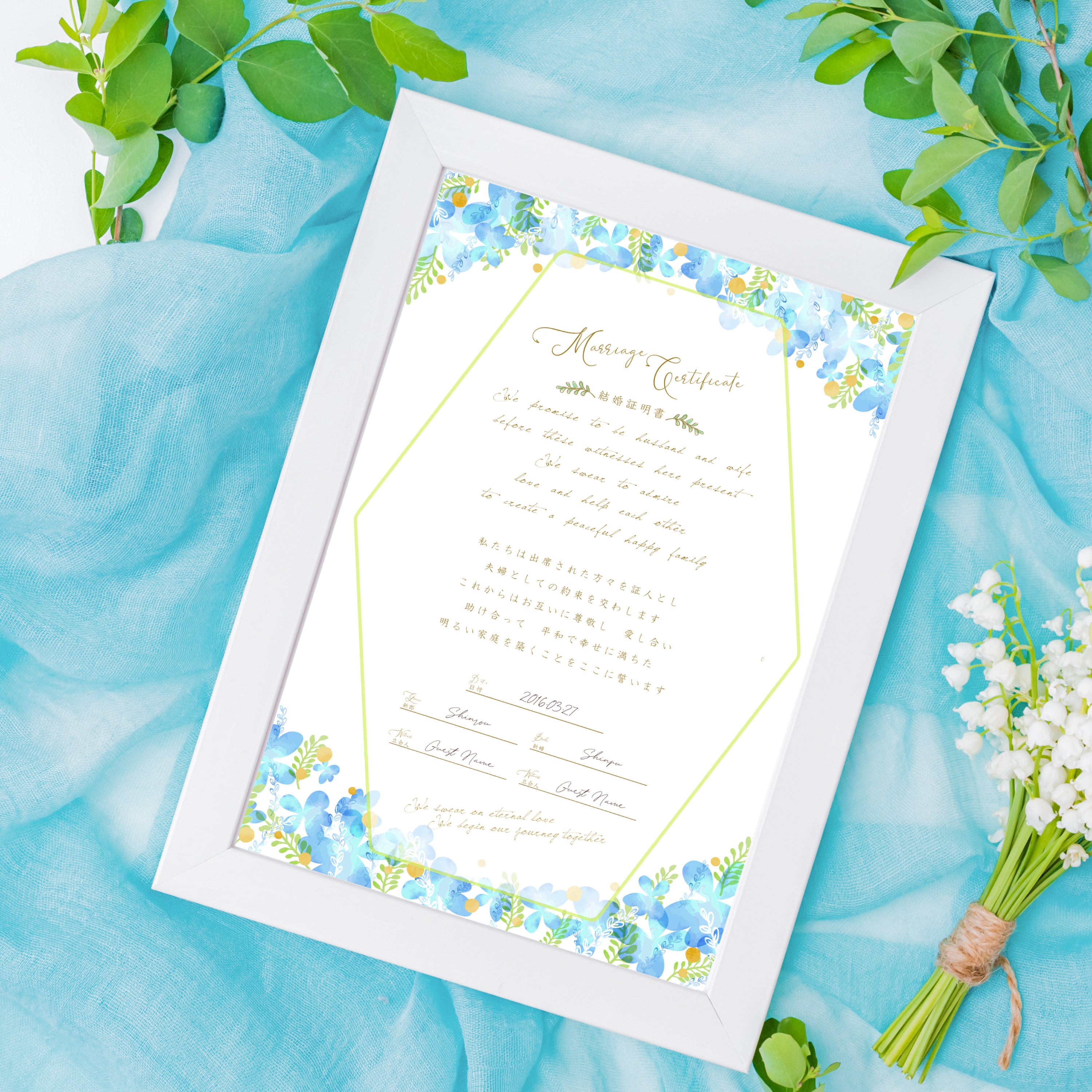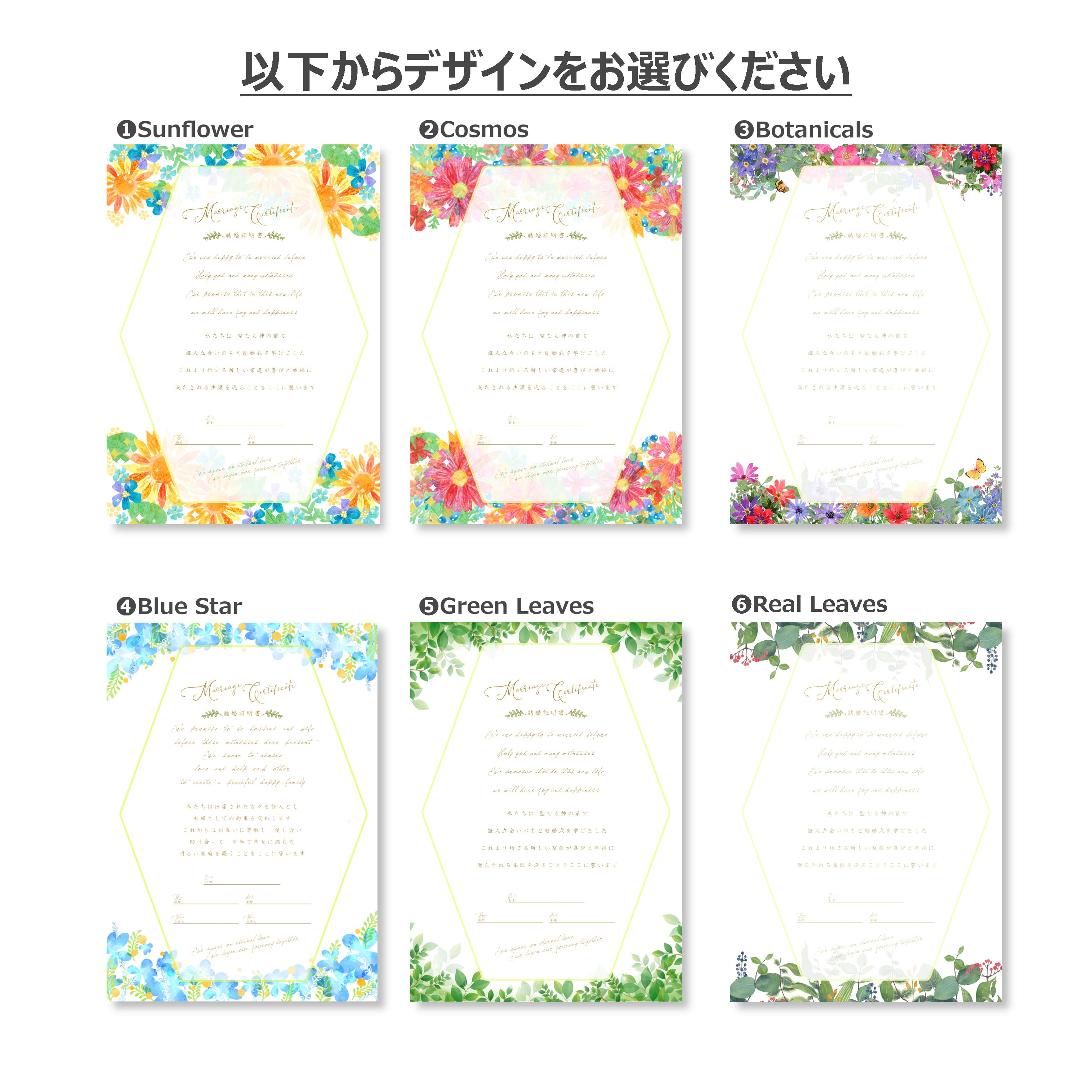 【オリジナル文章OK!】結婚証明書 ナチュラル 花柄 可愛い 誓いの言葉 オリジナル 人前式 教会式 新郎新婦サイン 署名